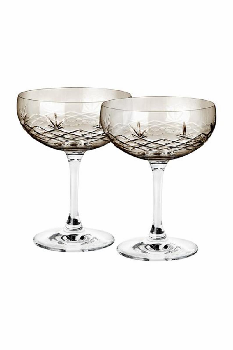 Lekre Champagne skåler i farget krystall fra Frederik Bagger.