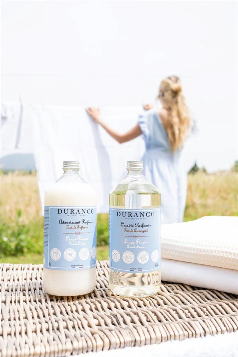 Durance flytende klesvask fylt med rene eteriske oljer. Såpen er ikke tilsatt fosfat, og er effektiv mot flekker. Passer både til maskin og håndvask. Kan også brukes på ull og silke. Er laboratorie testet mot husmidd, og anbefales for allergikere.