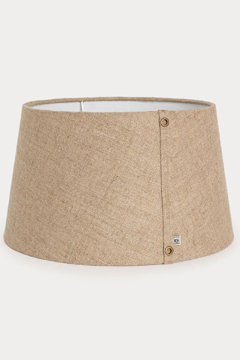 Klassisk lampeskjerm i naturbeige lin med dekorative maljer i skjøten. Passer til lampefot med skrufeste. Designet av Halvor Bakke.
