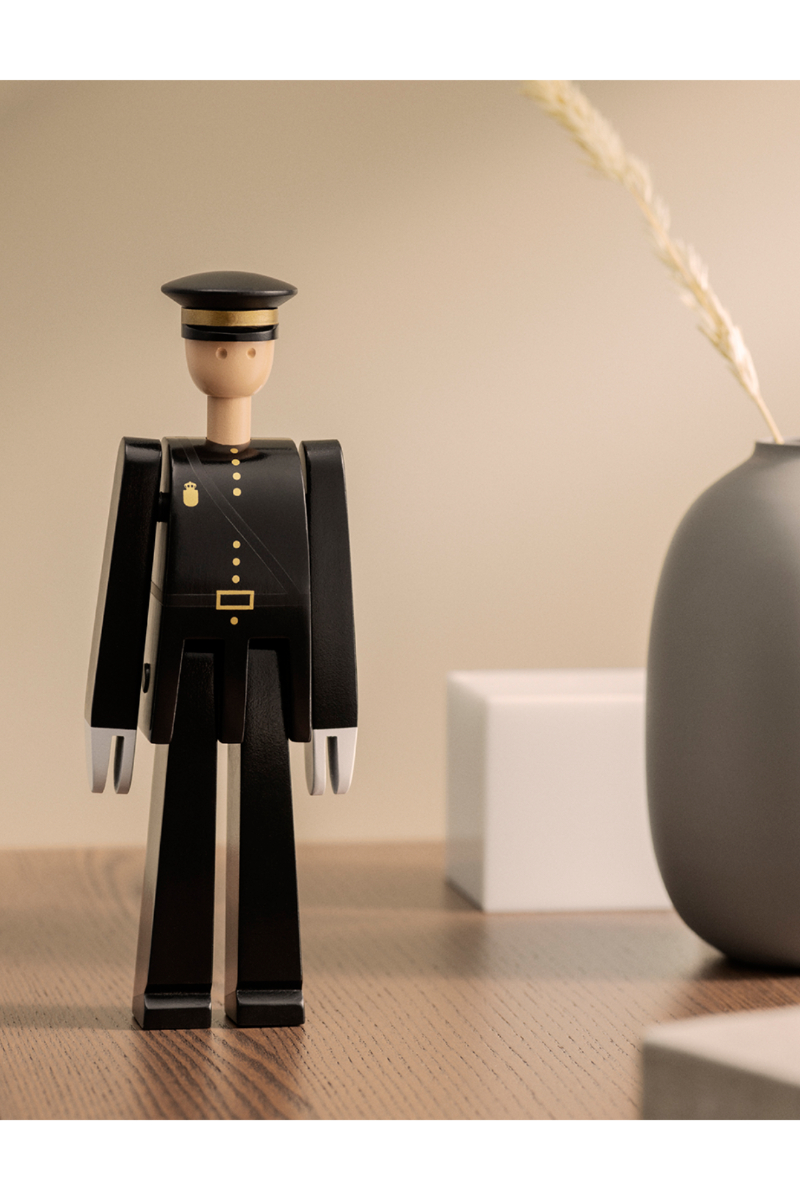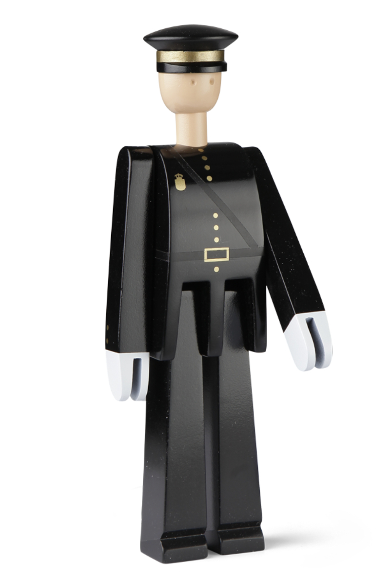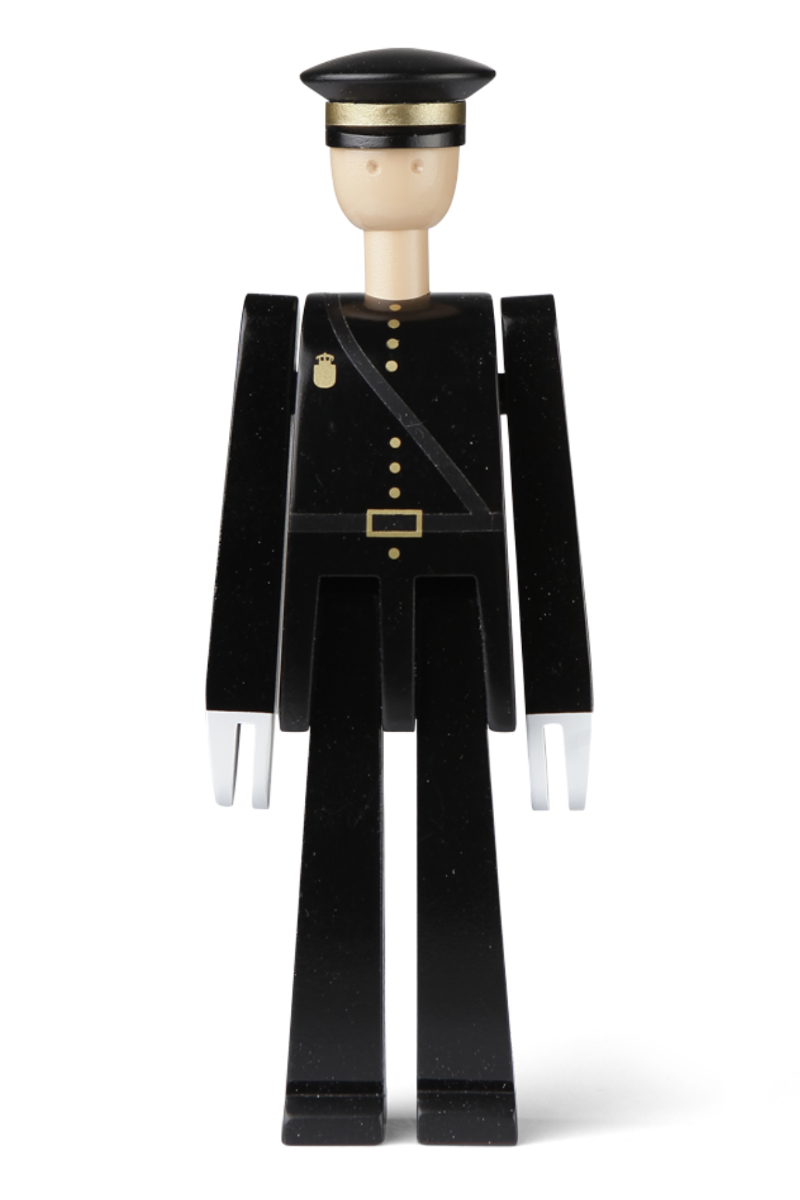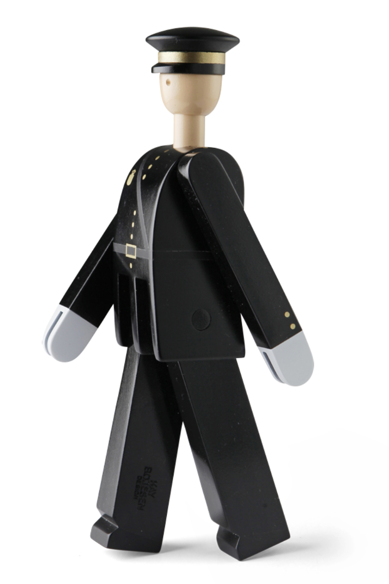 Politimannen fra Kay Bojesen ble designet i forbindelse med inspirasjonen til andre uniformerte institusjoner. Politimannen er i samme serie som gardisten og postbudet. Disse uniformerte trefigurene har vunnet danskenes hjerter. I dag er de fast inventar i de fleste danske hjem. Politimannen er med sin sorte farge et tidløst innredningselement. Han passer spesielt godt inn i et moderne designhjem. Men han kan i like stor grad pryde en alminnelig dansk familieinnredning. Den unike og tidløse politimannen er utformet i bøk, som så er blitt malt i sort. Han måler 18,5*7*4 cm. Den uniformerte trefiguren er en perfekt gave til designelskeren som kan se det vakre og unike i politimannen.