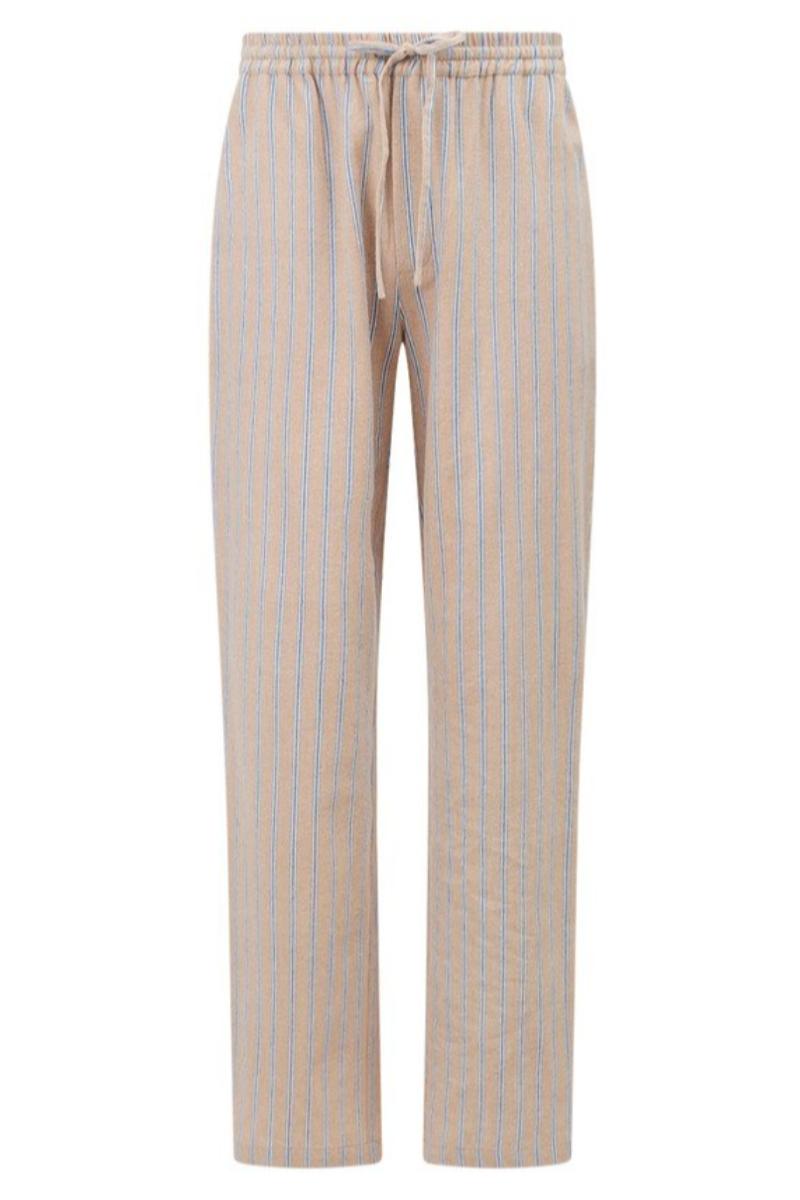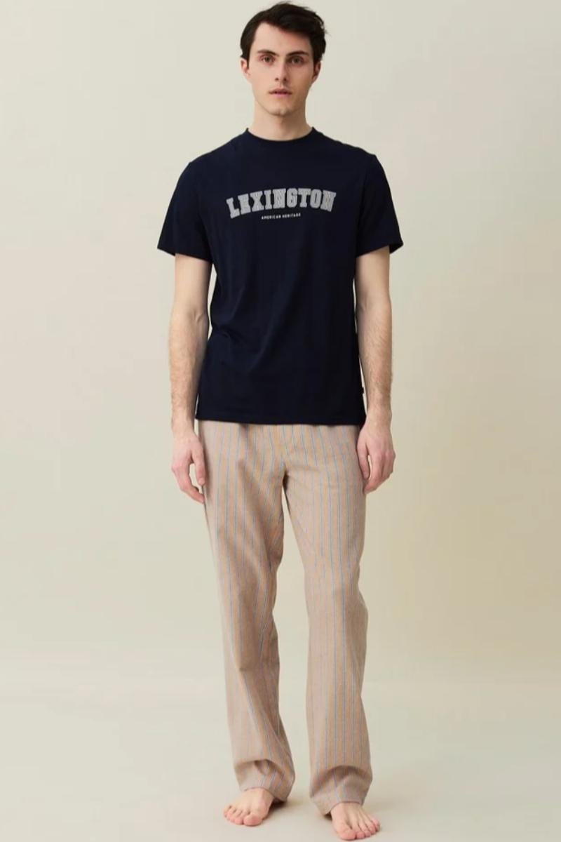 Brooklin pyjamas i bomullsflanell for perfekt avslappende netter eller late dager hjemme. Mørkeblå t-skjorte og stripete bukse i flanell holder deg varm på kjølige netter. T-skjorten i jerseybomull har trykket Lexington-logo på brystet, korte ermer og Lexington-logo i sidesømmen. Buksen har komfortabel elastikk i midjen, sidelommer og én stilig baklomme. Du kommer ikke til å ha lyst til å dra hjemmefra!