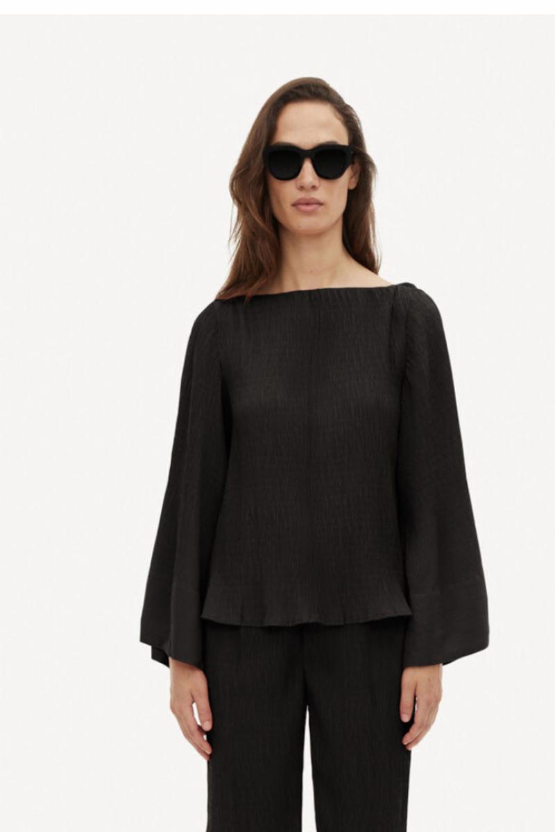 Tekstur er et sentralt fokus for sesongen, her vises den i form av plissé-finishen til Gerontia-blusen. Den plisserte fabrikasjonen er på en smart måte sammenstilt av en minimalistisk, men bohemsk silhuett, komplett med vide ermer. Kombiner din med skreddersydde bukser for å gi umiddelbar visuell interesse.