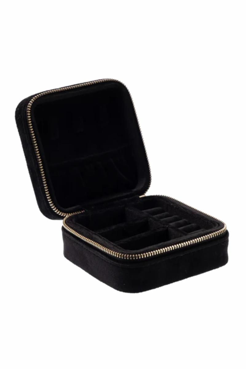 Lekkert lite smykkeskrin i fløyel. Perfekt reisesmykkeskrin.