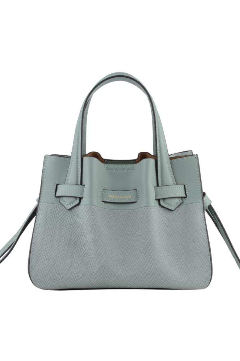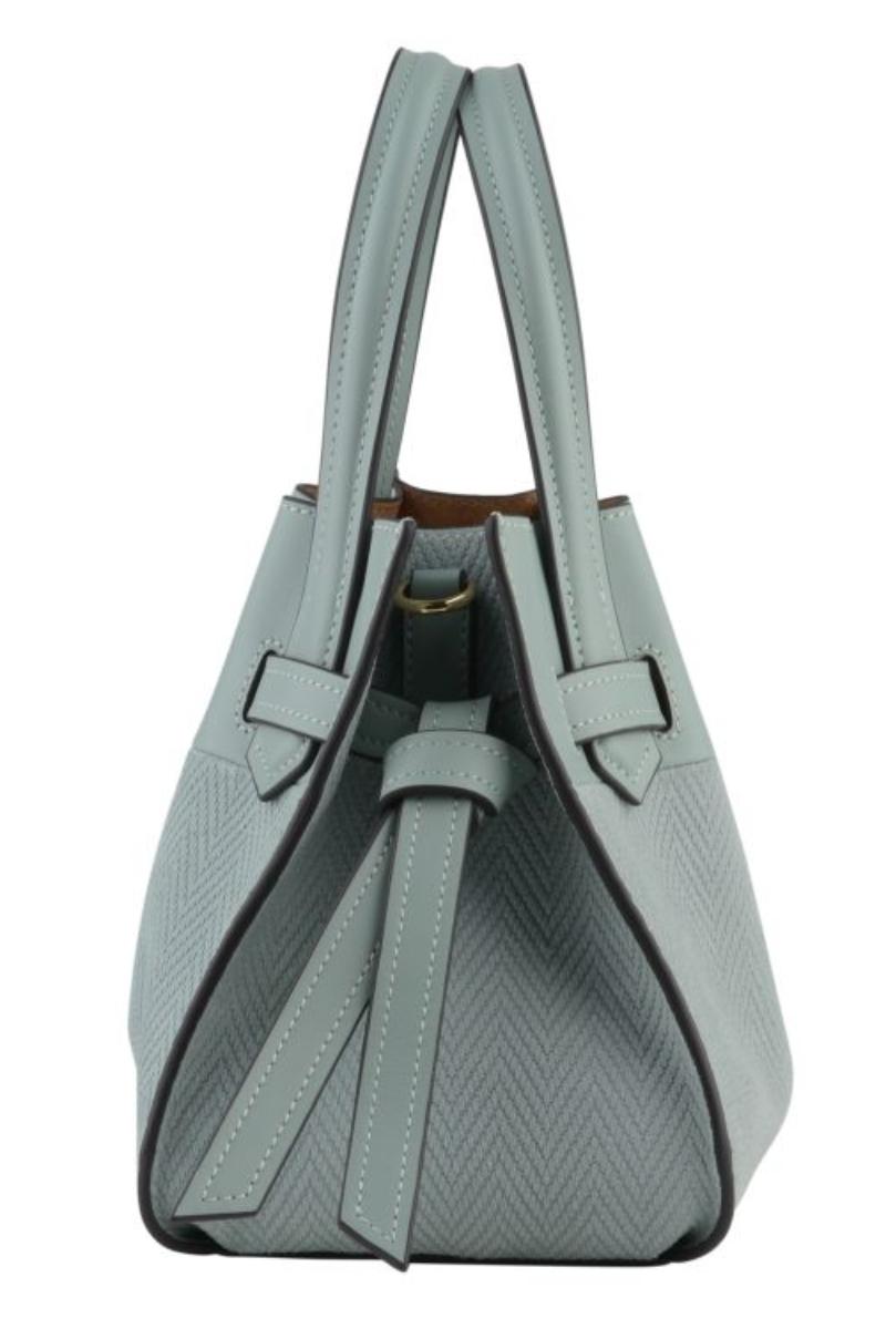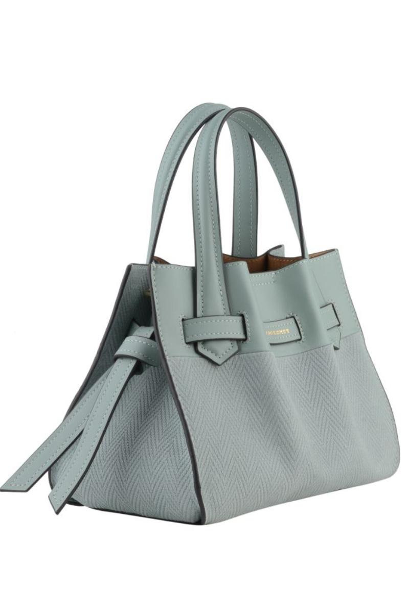Denne vesken har tre rom, et mellomrom som kan lukkes på nytt med lukking og et rom foran og bak som kan lukkes med magnet. En avtagbar og justerbar skulderrem selges sammen med vesken.