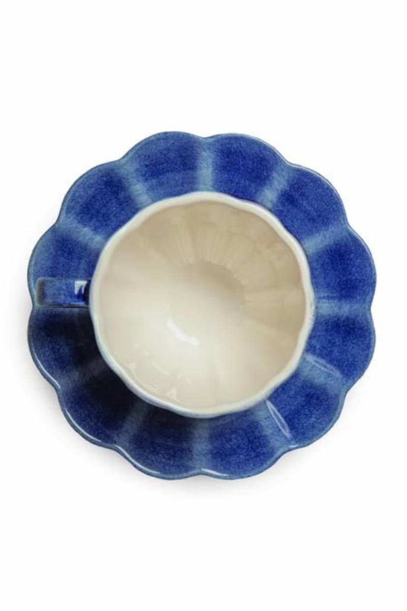 Koppen fra Mateus har en bølgete stil i keramikk med et mykt formspråk med inspirasjon fra havet. Den har en sofistikert, leken balanse med en taktil, håndmalt overflate perfekt for varme drikker som kaffe og te. Hver artikkel er unik på grunn av dens håndlagete design.
