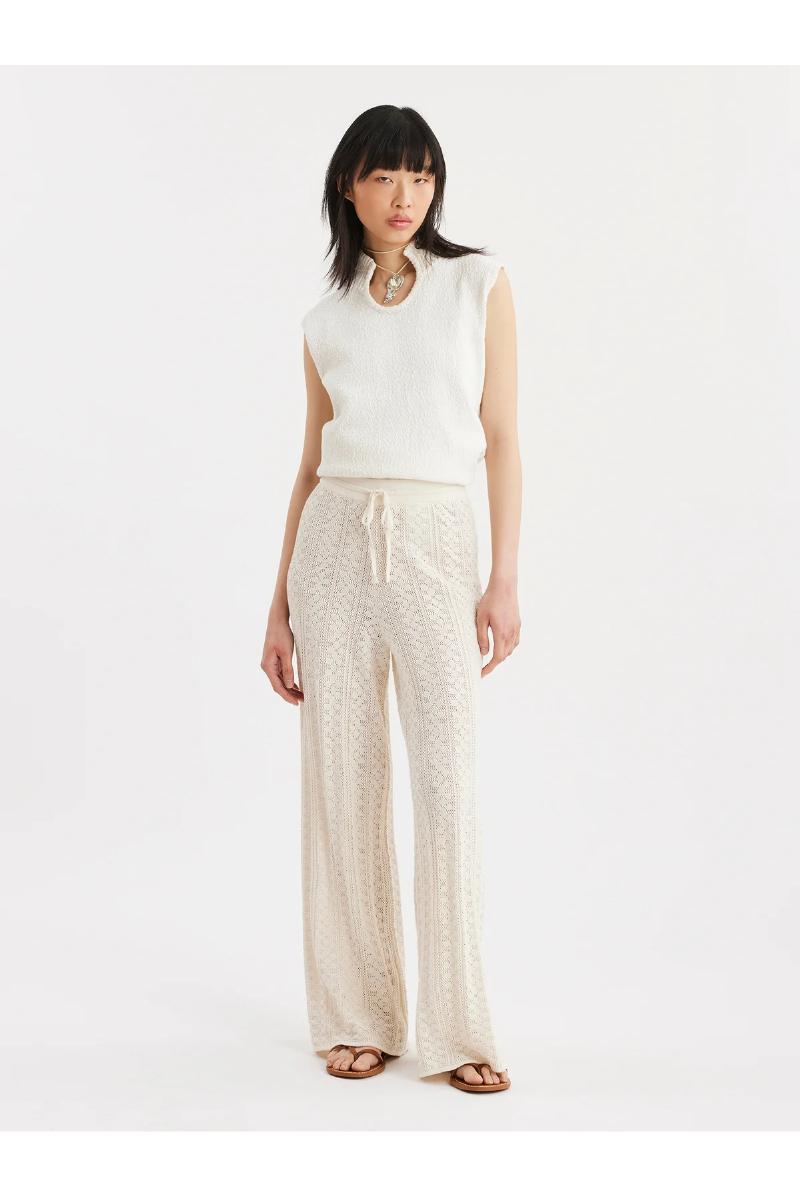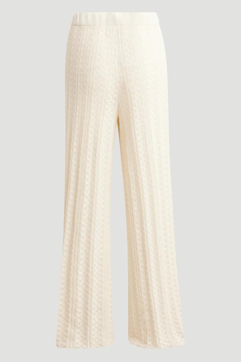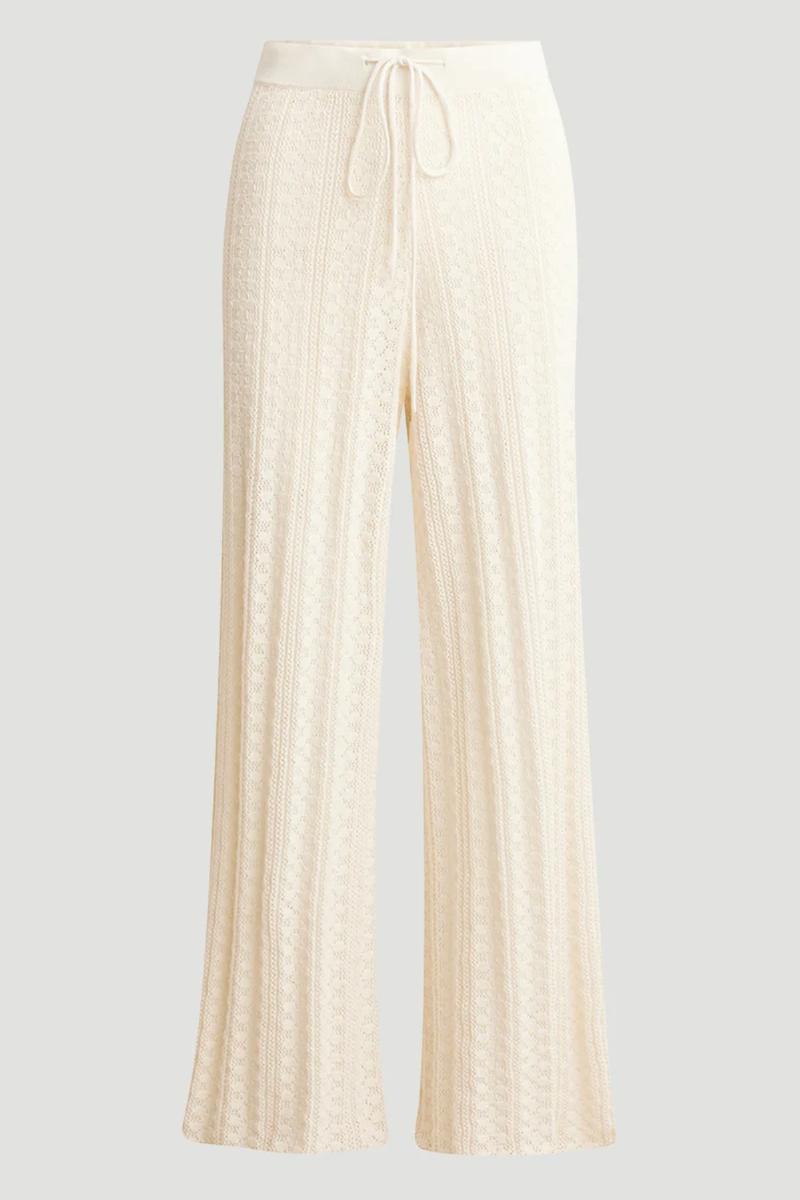 Thiril Crochet Knit Trousers er laget av 100 % økologisk bomull, og er detaljert med snøring i midjen og ensfarget strikkede kanter. Designet med Holzweilers tilpassede heklestrikkede mønster.