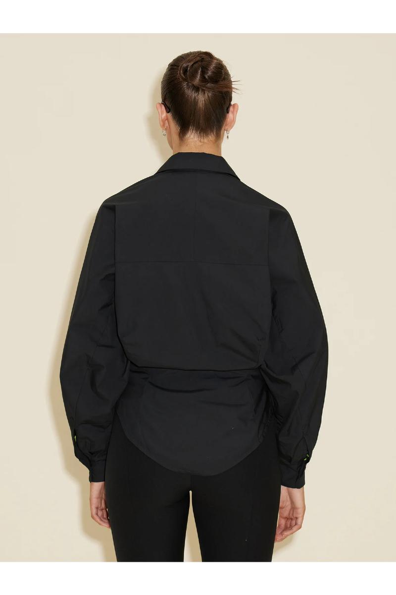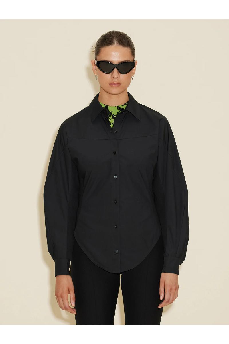 Holzweilers Cyra-skjorte er laget av myk, organisk bomull, og har en tilpasset midje og voluminøse raglan-ermer. Detaljert med knepping foran og skjortekrage.