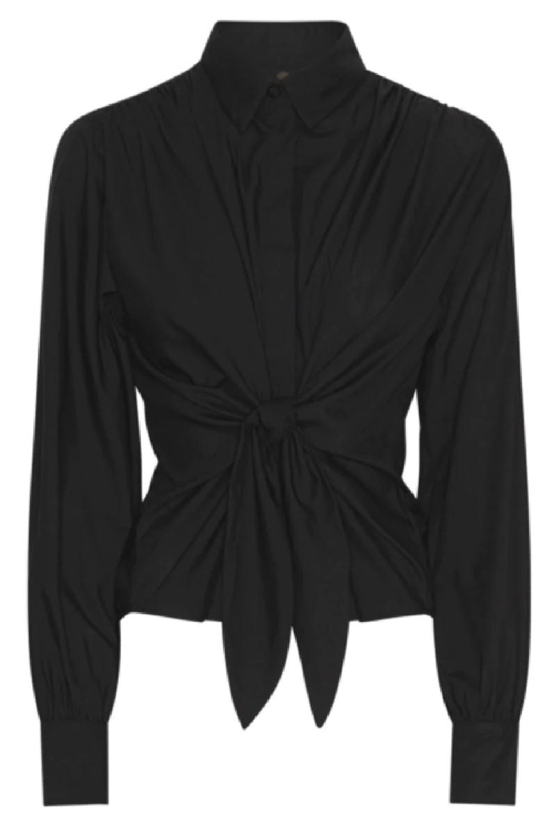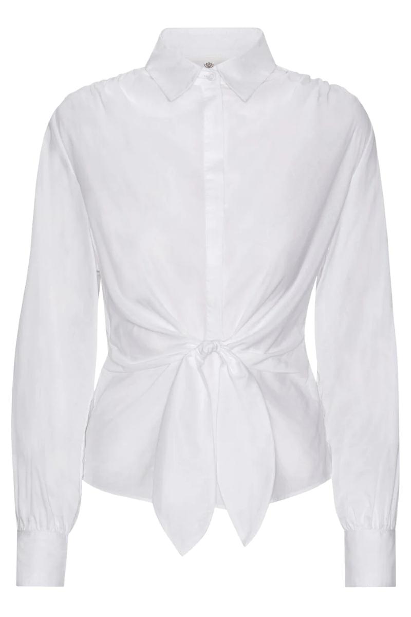 Lekker feminin skjorte fra Karmamia i 100% bomull. Knyting foran som gjør at den gir en slank fin figur.