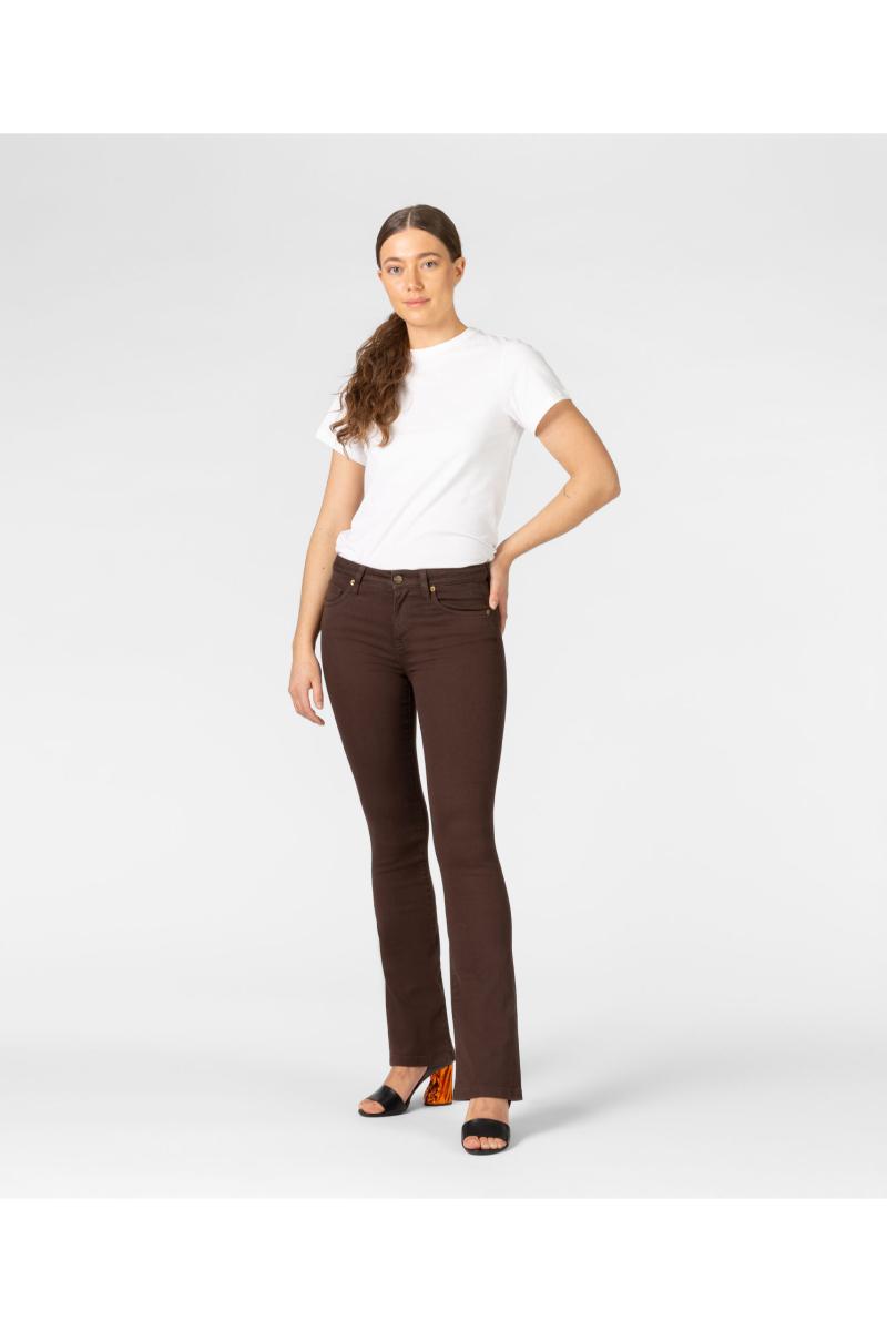 Bootcut jeansen er en retro inspirert og klassisk bukse, her i utgaven av en mørk brun bomulls stretch.