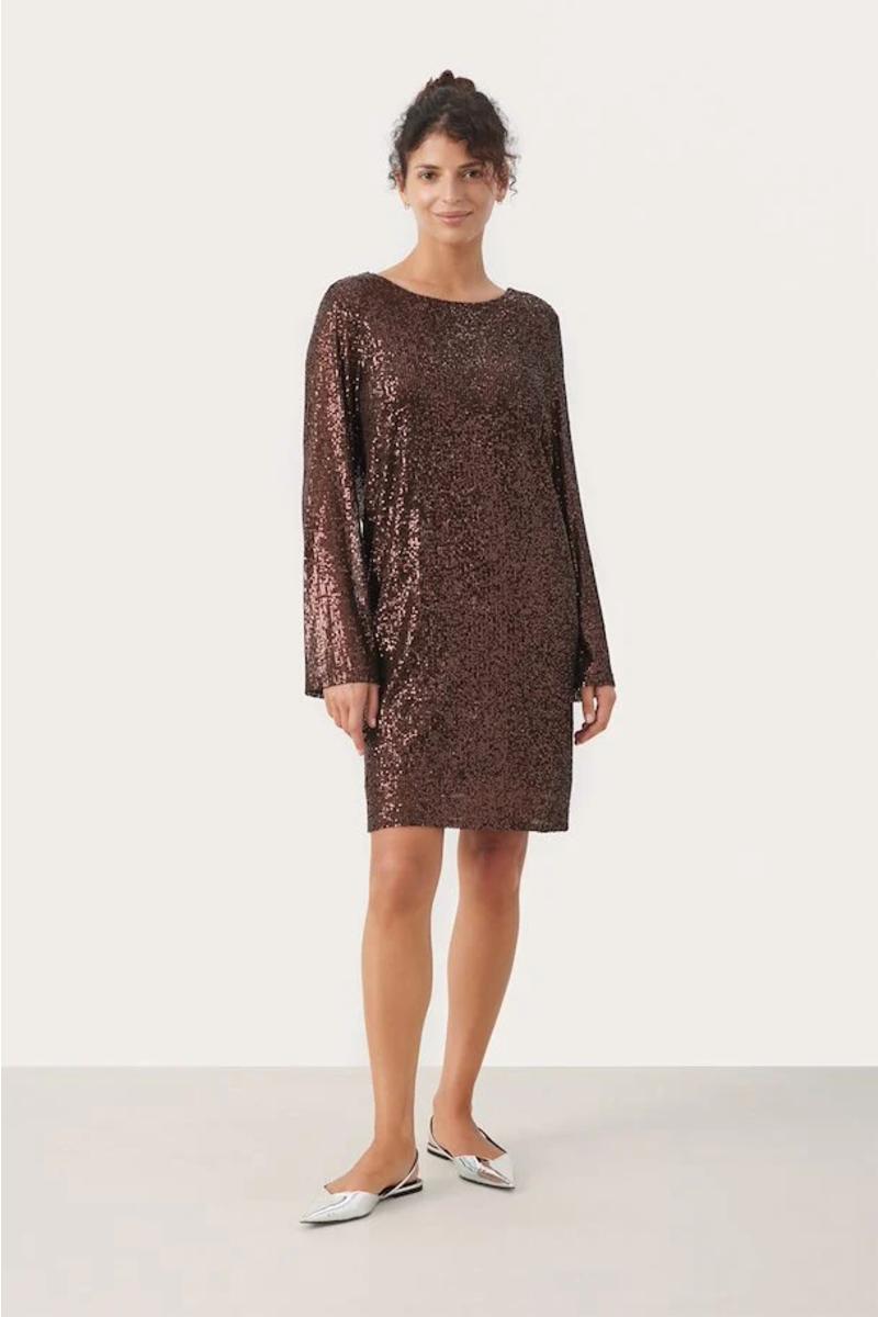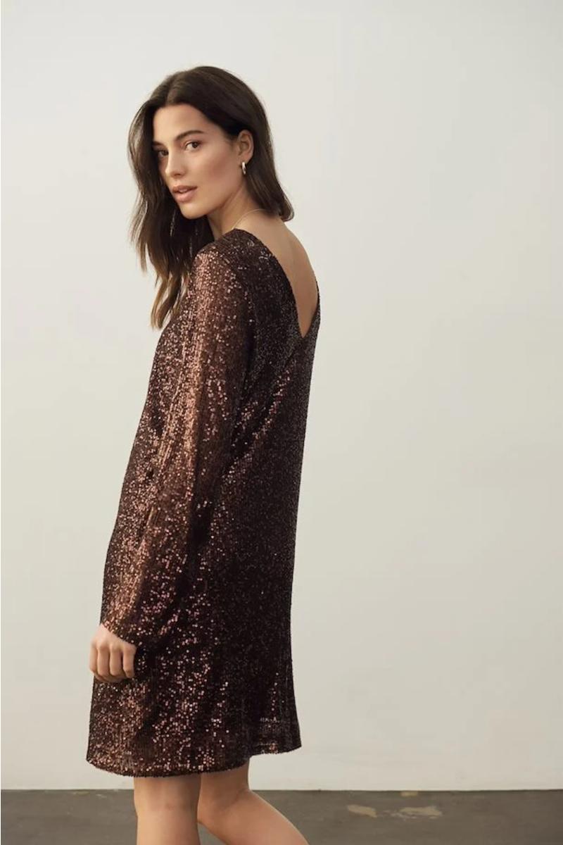 Lekker partykjole med paljetter i lekker metallic farge. Dett er årets partykjole.