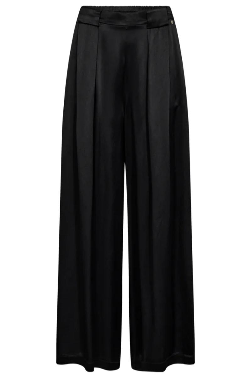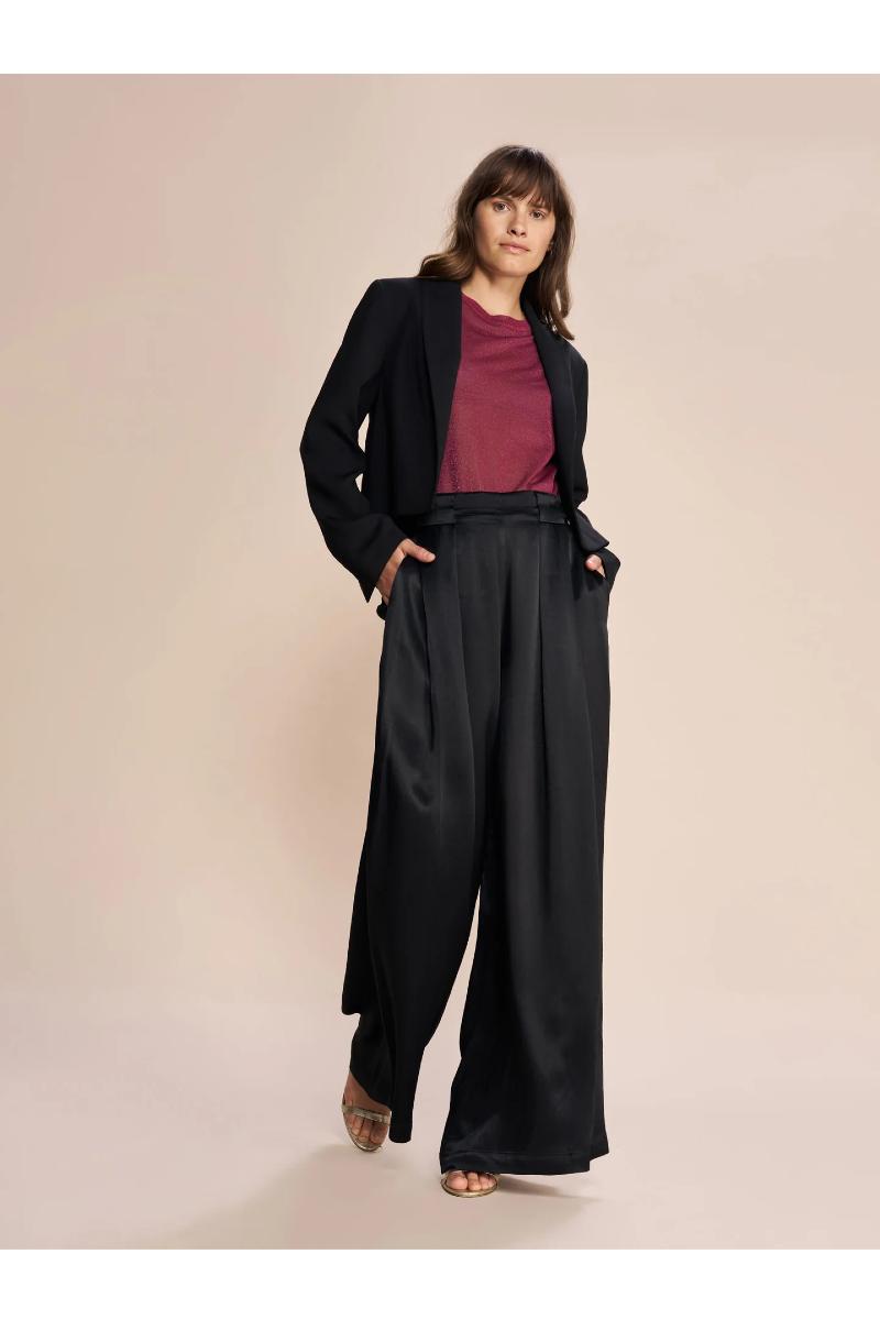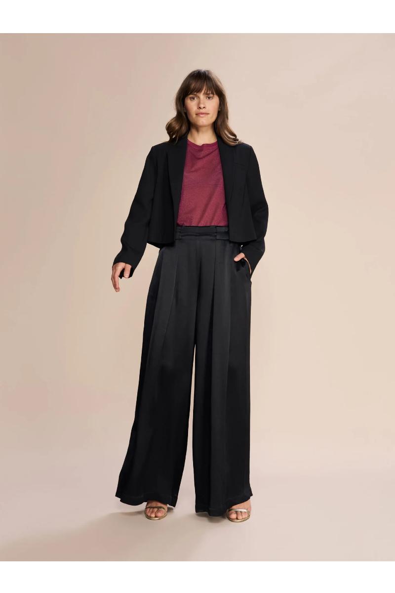 Disse fantastiske buksene i glanset kvalitet er designet i bred passform med midje midje og lang lengde. De er ferdig med myke folder og en elastisk midje. Vi ville stylet den med en innebygd statement-t-skjorte eller en klassisk skjorte.