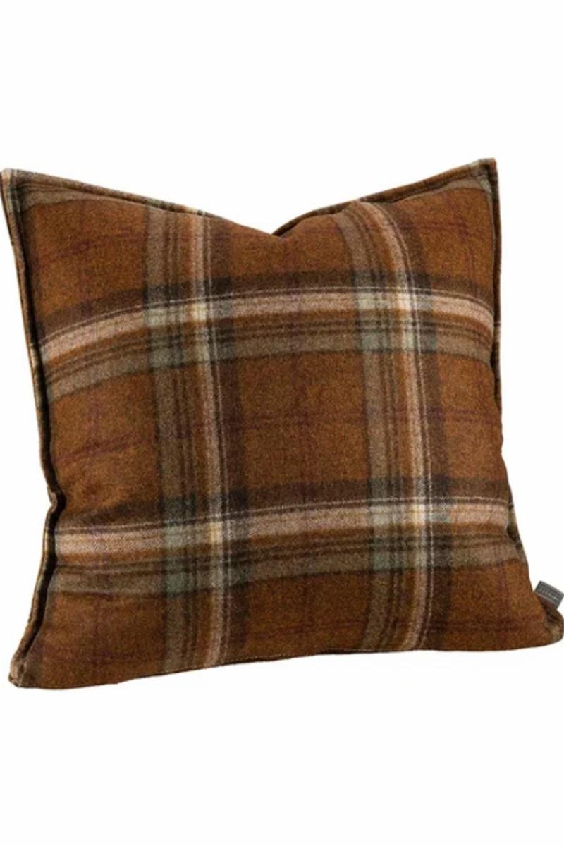 Rutete ullpute i brente farger 50x50. Innerpute følger ikke med.