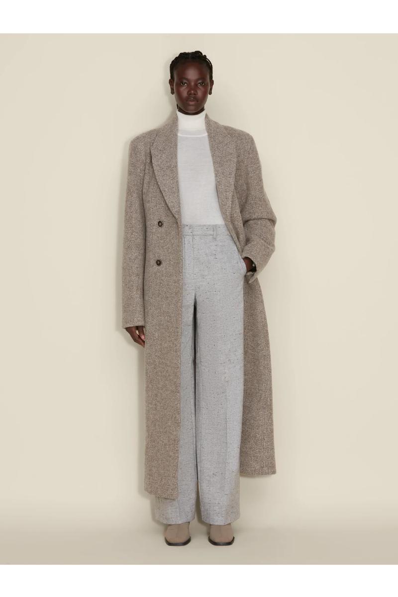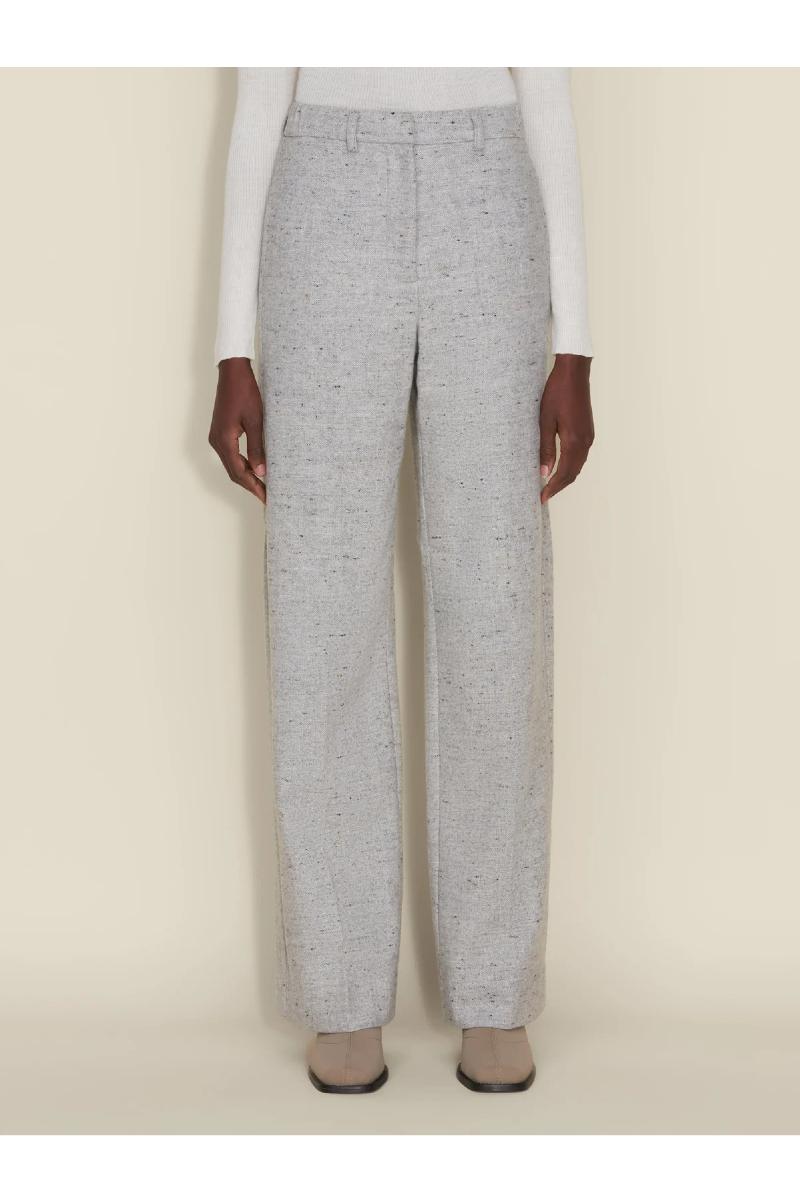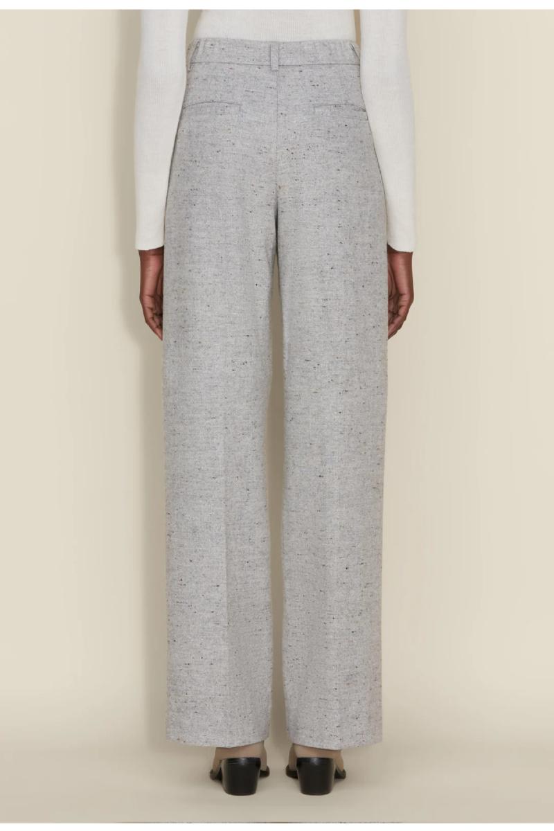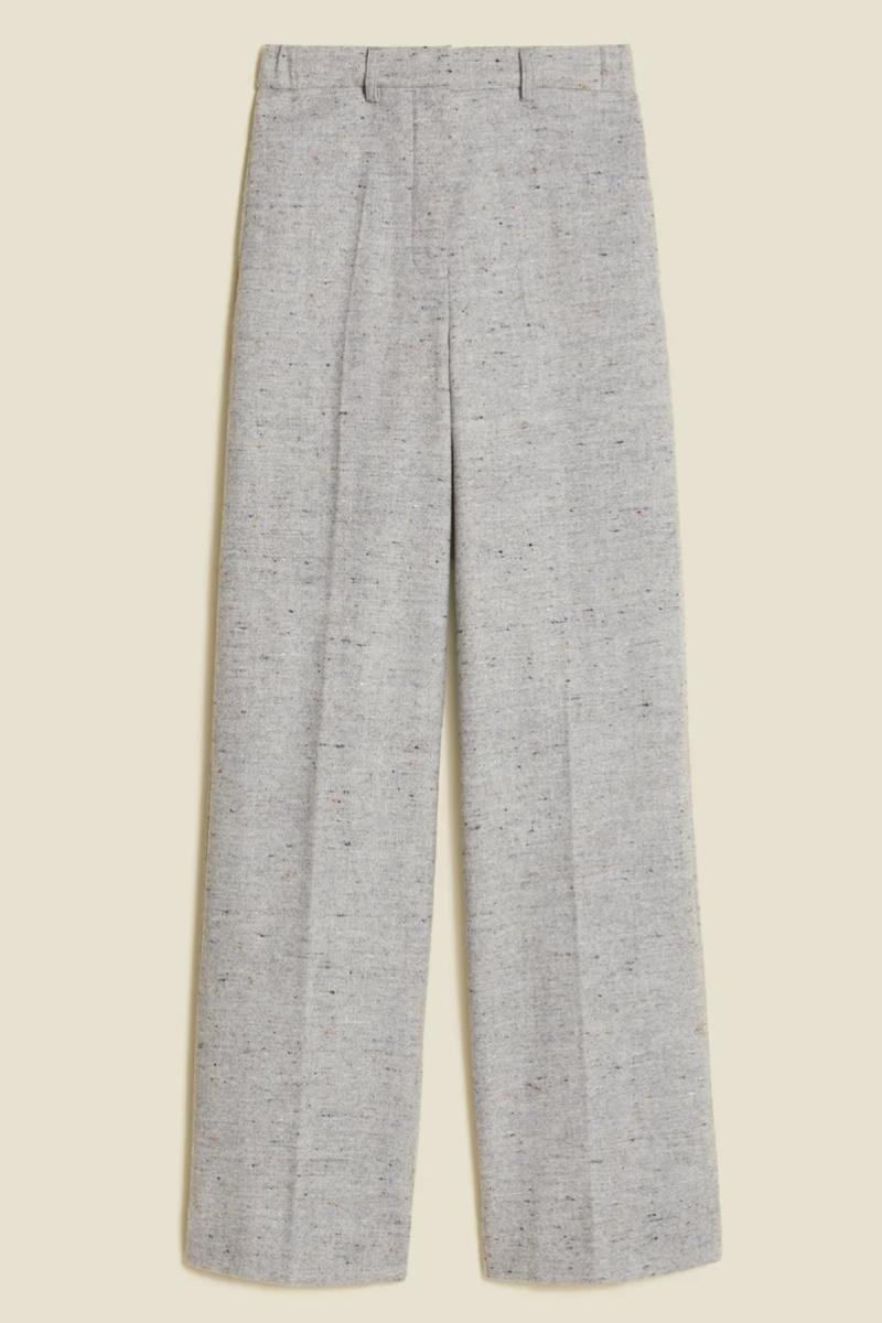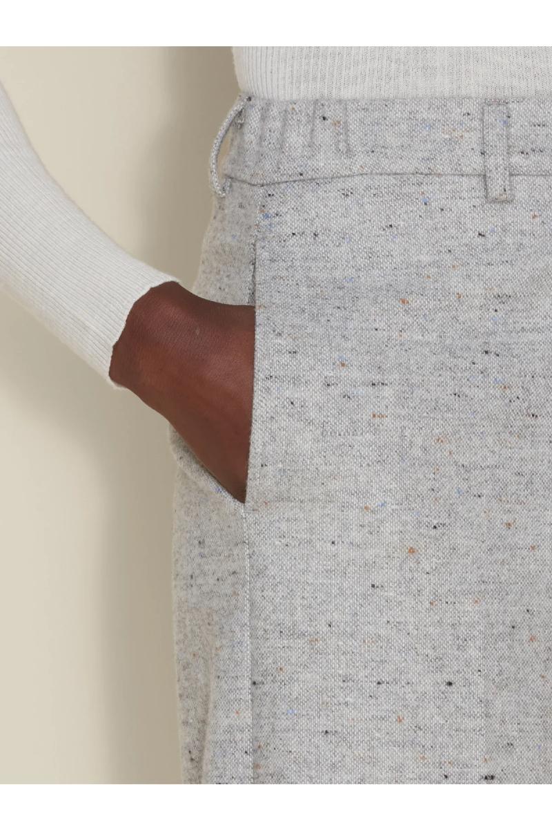 Våre Lana-bukser er laget av en isolerende flerfarget melangestrikk. Et par som kan styles opp eller ned, de har høy midje, side- og baklommer og brede ben med vanlig lengde.