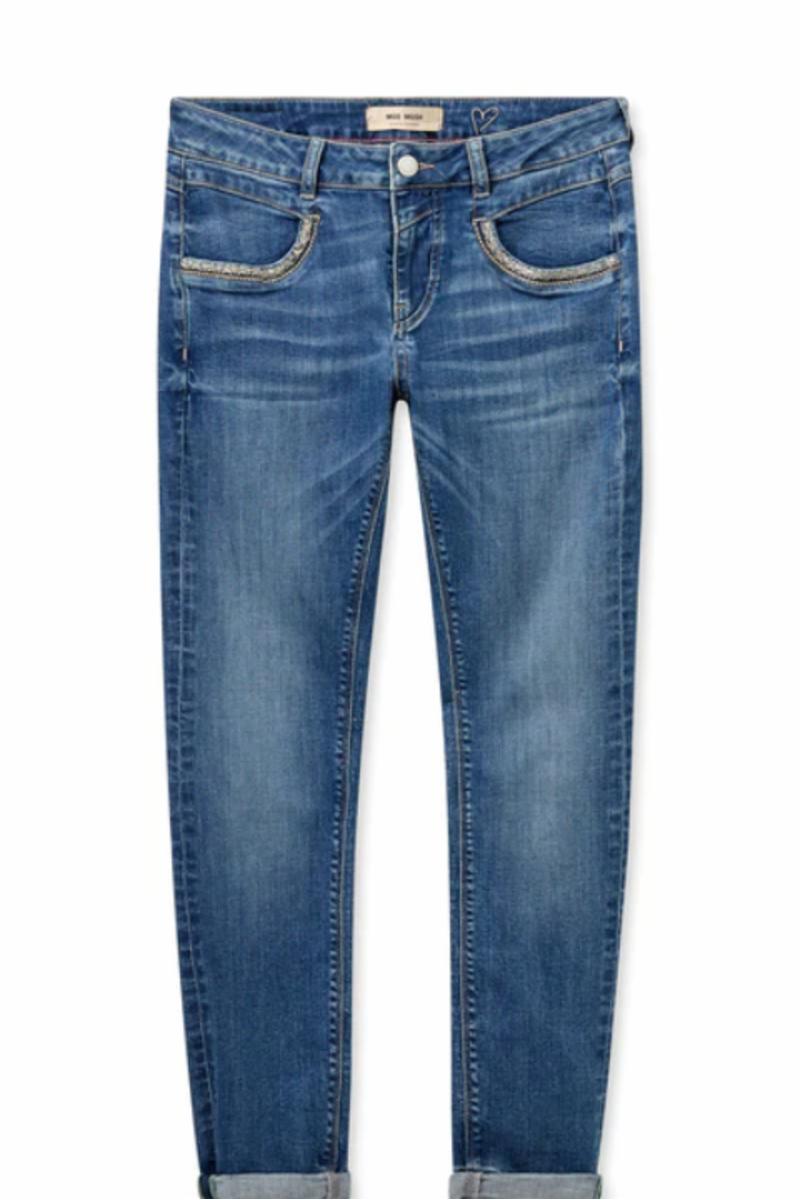 Oppdag et must-ha-tilskudd til garderoben din med disse ikoniske jeansene, med avsmalnende ben og en allsidig høy/mellomhøy midje. En elsket stil fra MOS MOSH, disse jeansene blander enkelt kult og sofistikert ved å la deg bruke dem lavt for en edgy vibe eller trekke dem opp for et mer polert utseende. De er ferdig med elegante lurex-søm og studs ved lommene og er perfekte for å rulle opp mansjettene og kombinere med semsket skinnstøvler og en dristig statement-t-skjorte for å oppnå en edgy look.