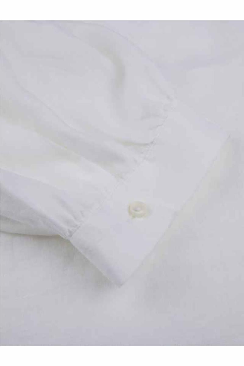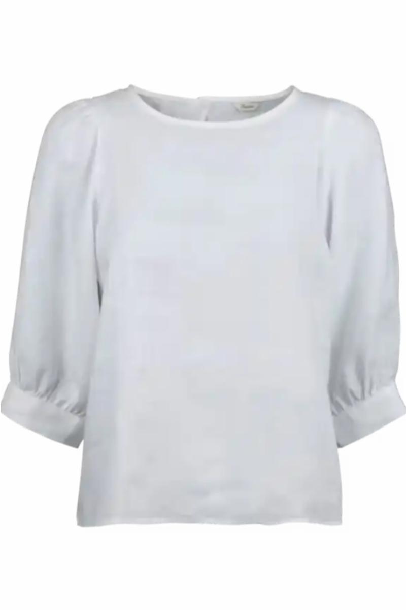 Denne søte hvite blusen er laget av lin og er detaljert med rund hals og 3/4 puffermer.