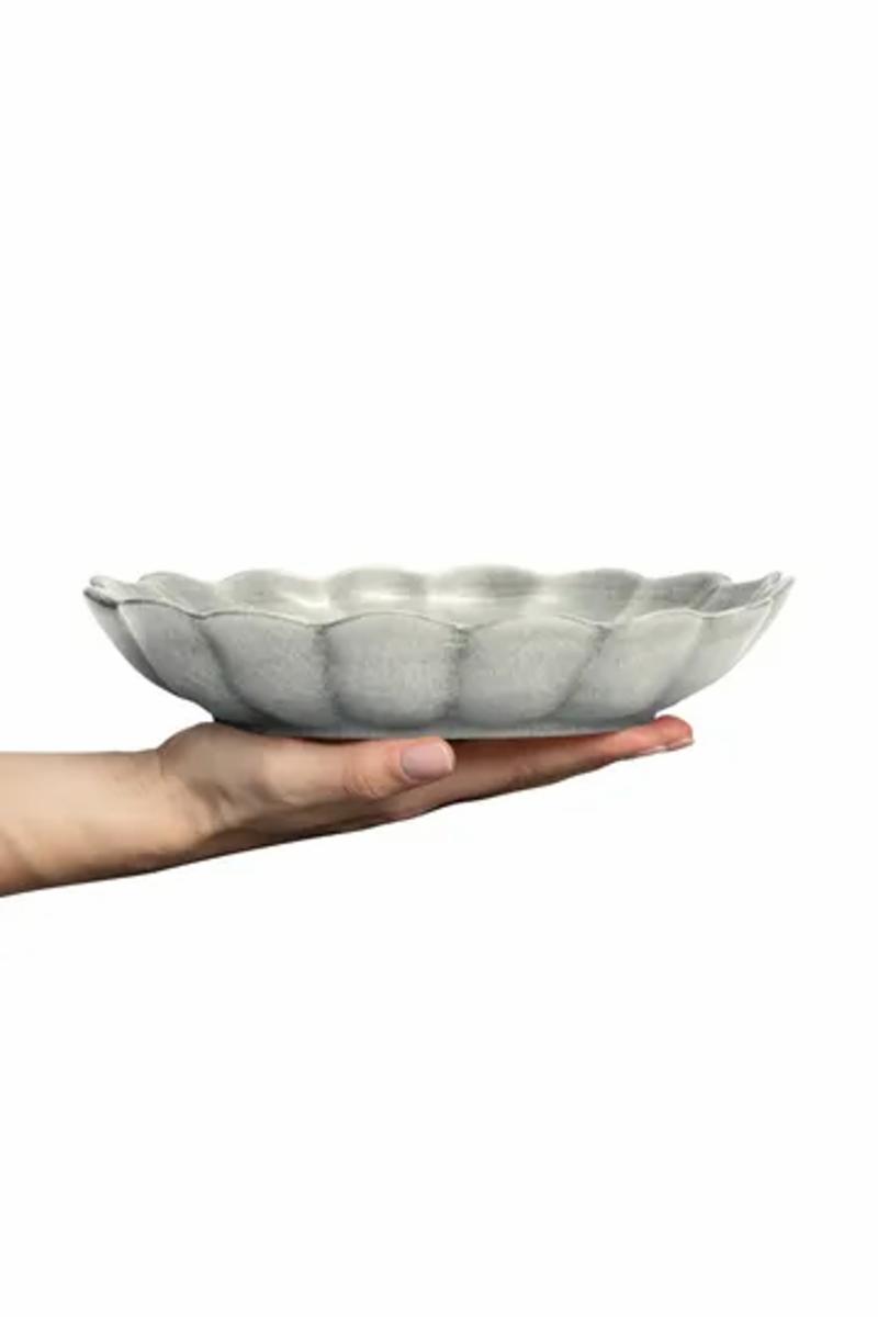 Oyster østersskål 24 cm fra det svenske varemerket Mateus er en vid skål med bølgede kanter. Skålen passer å spise en salat eller pastarett fra, eller til bruk ved servering. Den vakre håndmalte keramikken er fin å kombinere i ulike varianter og farger som gjør borddekkingen vakker.