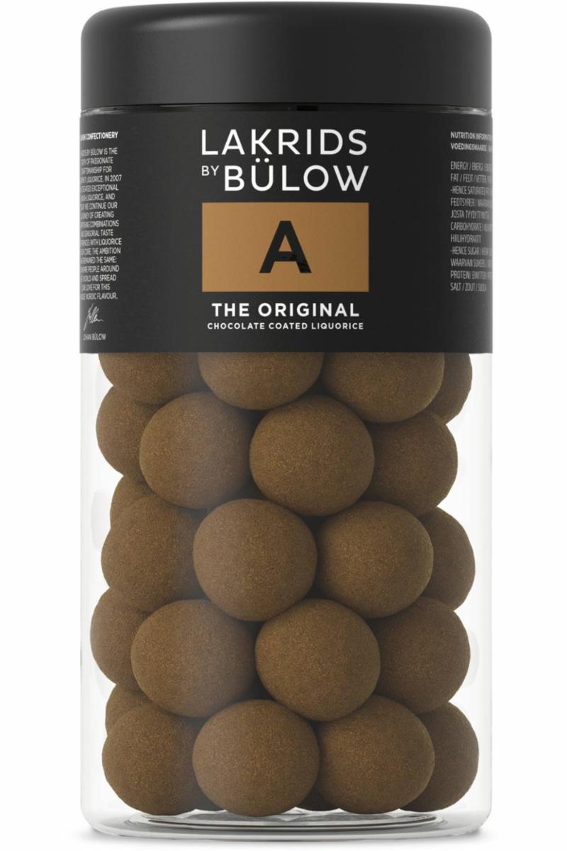 A - THE ORIGINAL var det aller første produktet Johan Bülow utviklet, da han fikk ideen om å drasjere lakris i sjokolade. Til tross for skepsis til ideen så det populære produktet Lakrids A snart dagens lys. Kombinasjonen av søt lakris, nøye utvalgt premium melkesjokolade og fint lakrispulver er etter manges syn svært vanedannende.