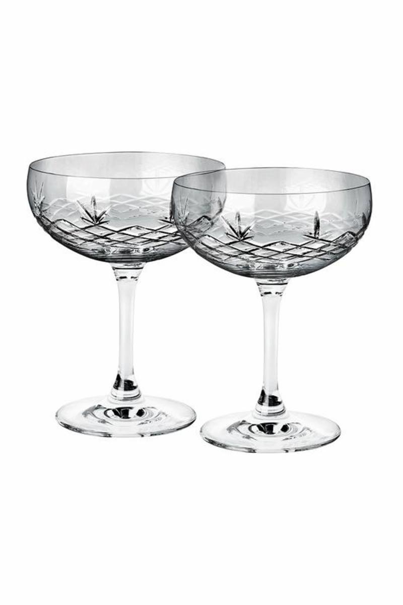 Lekre Champagneskåler i farget krystall fra Frederik Bagger.