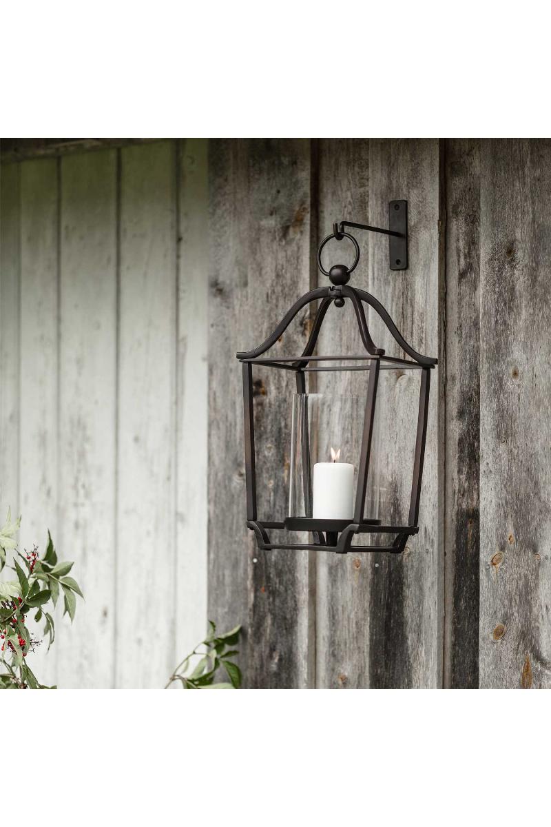 Dekorativ vegglykt med klassisk uttrykk i sort aluminium. Krok til å henge lykten på veggen følger med.